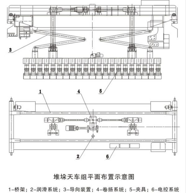 碳素堆垛起重機(又稱碳素堆垛天車、、炭塊堆垛機)全自控多用途碳塊堆垛機組是大型預(yù)焙燒陽極碳塊倉庫內(nèi)的關(guān)鍵設(shè)備,可夾放生、熟陽極碳塊,通過鏈式輸送機將碳塊搬運到指定地點。