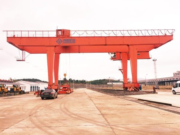 本起重機專用于鐵路貨場裝卸、堆放20、40及45英尺國際標準集裝箱。本機配備伸縮式集裝箱吊具,用于吊運不同規(guī)格集裝箱。吊具的開閉鎖動作和伸縮由司機在操縱室操作。同時,為了適應(yīng)不同的集裝箱堆放方向和集裝箱拖車行走方向,集裝箱吊具可設(shè)計有旋轉(zhuǎn)機構(gòu),可使集裝箱任意旋轉(zhuǎn),以提高裝卸效率。